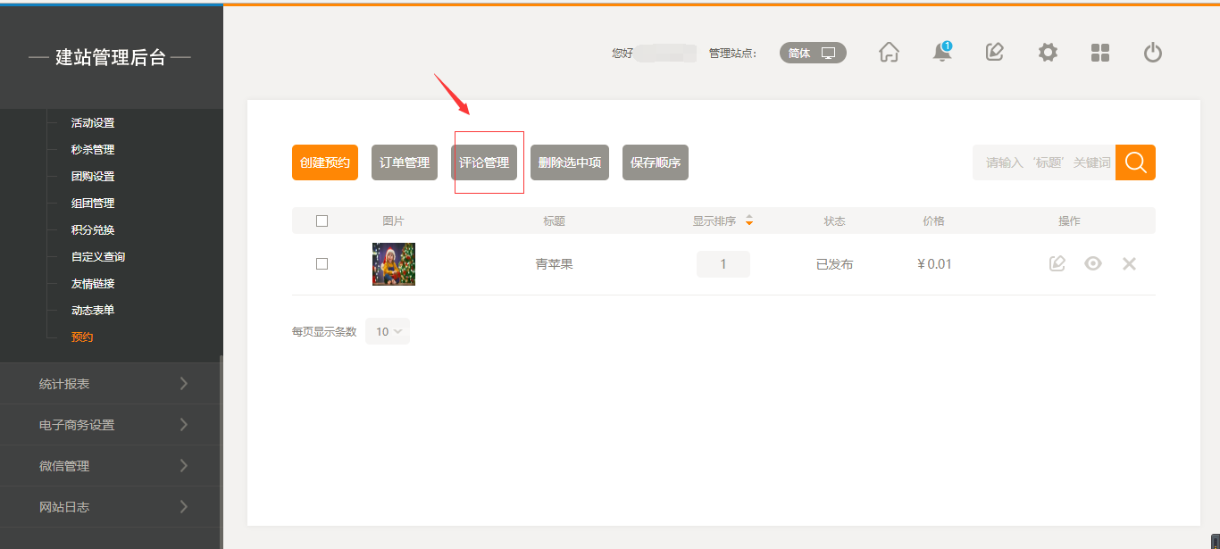 1.“后台管理”-“预约”-“评论管理”,点击进入后,可以选择对评论进行删除和隐藏,操作之后,在前台页面中则不会显示该评论的内容,如图所示: